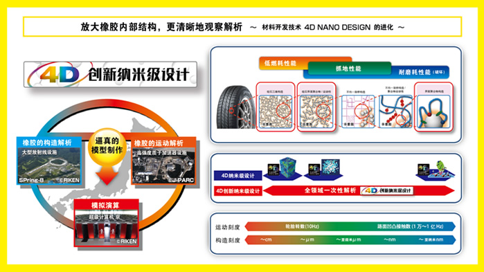 回顧?quán)嚨撈盏钠放瓢l(fā)展歷程,技術(shù)創(chuàng)新是出現(xiàn)頻率最高的關(guān)鍵詞。鄧祿普技術(shù)團(tuán)隊持續(xù)探索尖端科技,最新開發(fā)“4D創(chuàng)新納米級設(shè)計”技術(shù)運用大型放射光設(shè)備“Spring-8”、高強(qiáng)度質(zhì)子加速器“J-PARC”和超級計算機(jī)“京”,從納米級微觀領(lǐng)域真實再現(xiàn)橡膠分子結(jié)構(gòu)及運動形態(tài),使原材料的開發(fā)精度和效率實現(xiàn)了質(zhì)的飛躍,全面提升了輪胎產(chǎn)品的低油耗性能、抓地力性能和耐磨耗性能。